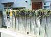 塀の上部に鉢を置く場所をつくり、ツタ(リシマキアン)を垂らす。硬い素材感も緩和される