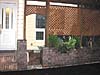 道路際にトレリスとゲートを取り付け、開口部を隠している。透過性があるため圧迫感も少ない