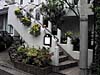 鋳物のアプローチ階段にツタを絡ませて独特の印象を生み出している