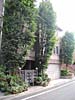 2階までとどく存在感のある樹木。剪定が欠かせないが、門扉のつくりと合わせて硬質な建物の外観を和らげる効果となっている