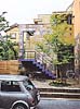 アプローチ空間に階段、意匠壁、樹木を植え、スポット広場的に演出