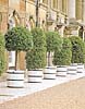 海外の事例。コンテナと月桂樹の刈り込みが楽しい |