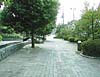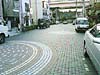 瓦をデザインモチーフとした道路(世田谷区用賀プロムナード)。質感と色、短歌を彫りこんだ瓦をアクセントに。遊歩道のようでもあるが、車が通行する部分もある