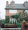 ボウウィンドウとトレリスを使った植栽、窓下の植え込みが建物外観デザインと調和している