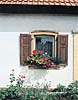 窓辺に置かれた植栽はまちなみに潤いをもたらす。窓の創りも愛らしい