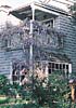 海外の事例、印象的な表情である。出窓の桟と手摺の白、藤の花とのコントラストが見事