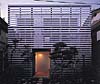 木製ルーバーで道路に面した1・2階の開口を覆っている。桟木の細さで軽やかさを感じさせる、快いファサードである