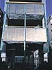 バルコニーと玄関アプローチを一つの面にまとめている。手摺りを透過性のあるパンチングメタルとし通りに対し柔らかさを出している