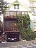 地上から3階手摺格子までツタを絡ませたダイナミックな緑化。通りの一角に良い印象を与えている