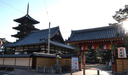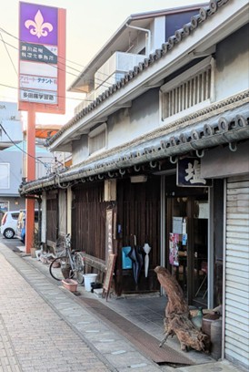 善通寺にほど近い観光交流センターは、市指定文化財の旧すし傳店舗を活用したものです(写真7)。軍都として栄えた善通寺市の中でも特に賑わった料亭で、昭和初期の建築様式が残る貴重な建物です。善通寺境内は、五重塔(写真1左)や金堂のある東院と、御影堂や宝物館のある西院に分かれています。訪れたのが平日の夕方だったため、参詣者は少なく、静寂の中で荘厳な雰囲気を堪能することができました。