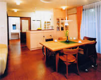 | 居間と食堂を一体化して広いLDKとし、隣接して祖母の居室(洋室)を設けました。LDK、祖母室、水回り、トイレ等は床レベルを揃え、車いすで自由に動き回ることが出来るようにしました。これにより祖母が再び家族と一緒に食事できるようになりました。また、車いすと共に介護の動線も改善しました。 |