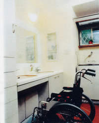 | 車いすで入れるようスペースを広げ、祖母室から直接入れる出入口を設けました。現在は、夜間も介助なしで使用しています。 |