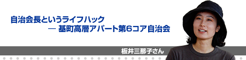 高層アパートは17自治会です。市営団地全体としては、3つの中層アパートの自治会も加わって合計20自治会になります。全体で3000世帯ほどが入居可能で、高層の方はコアごとに自治会があります。それぞれ170世帯くらいあって、私は6コアの自治会長になります。